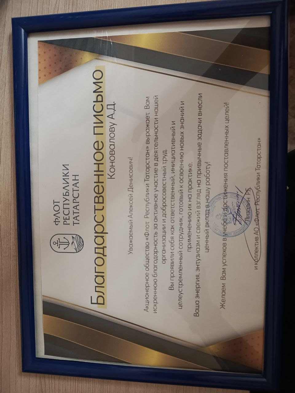 | Тип | Достижение | Описание: Благодарственное письмо Коновалову А.Д. Уважаемый Алексей Денисович! Акционерное общество "Флот республики Татарстан" выражает вам искреннюю благодарность за активное участие в деятельности нашей организации и добросовестный труд. вы проявили себя как ответственный, инициативный и целеустремленный сотрудник, готовый к освоению новых знаний и применению их на практике. Ваша энергия, энтузиазм и свежий взгляд на привычные задачи внесли ценный вклад в нашу работу! |