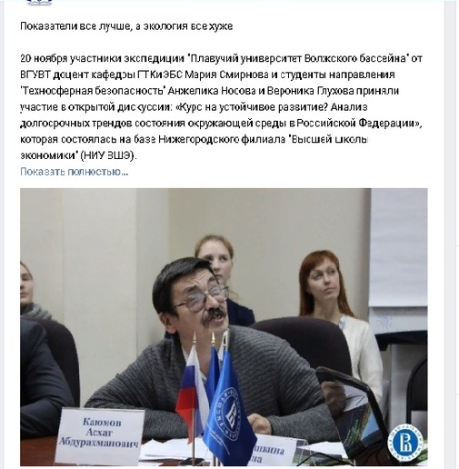 | Тип | Достижение | Описание: Открытая дискуссия: «Курс на устойчивое развитие? Анализ долгосрочных трендов состояния окружающей среды в Российской Федерации», которая состоялась на базе Нижегородского филиала "Высшей школы экономики" (НИУ ВШЭ) |